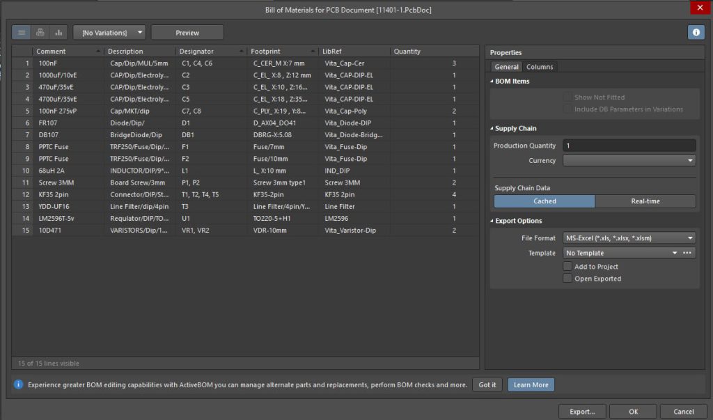 در مراحل تولید مدار چاپی بعد از طراحی مدار ( PCB ) لازم است لیستی از قطعاتی که در آن بکار بردیم تهیه کنیم تا در خرید قطعات و مونتاژ آنها سر درگم نشویم و دراین پست، می خواهیم روش تهیه این لیست را که به اسم BOM) Bill of Materials) در نرم افزار شناخته می شود، آموزش دهیم.