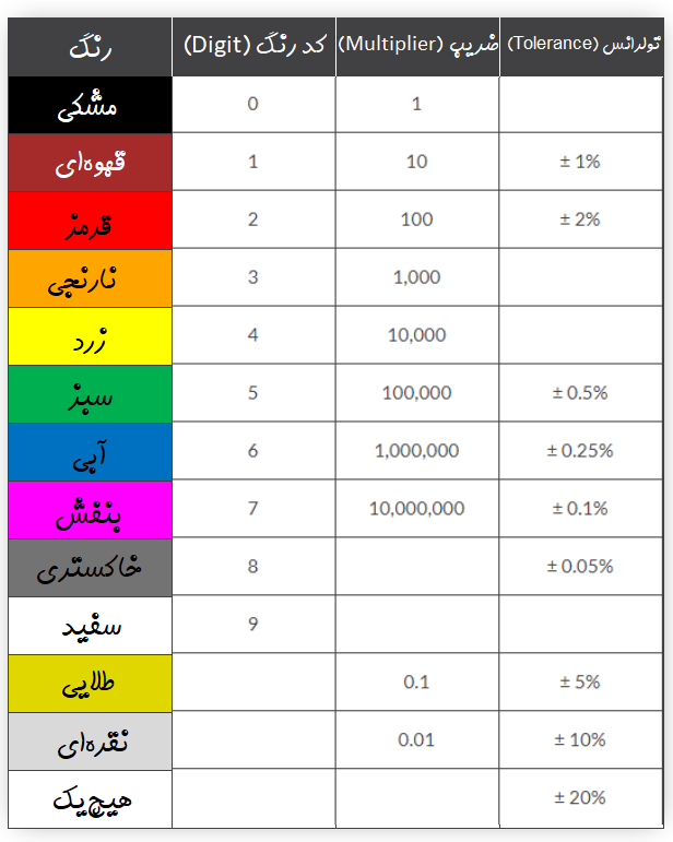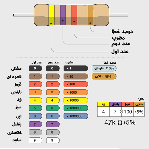 نحوه خواندن مقدار مقاومت الکترونیکی