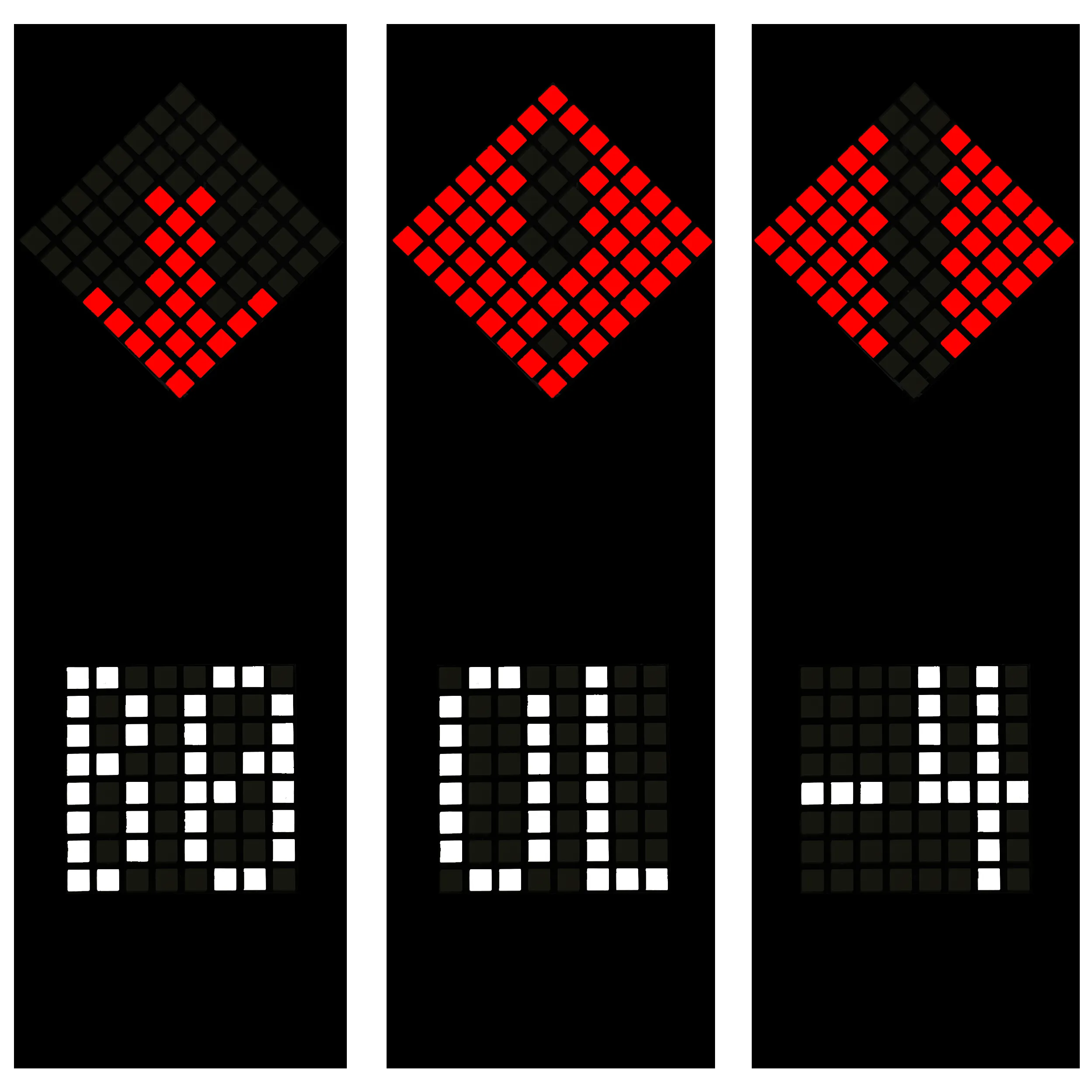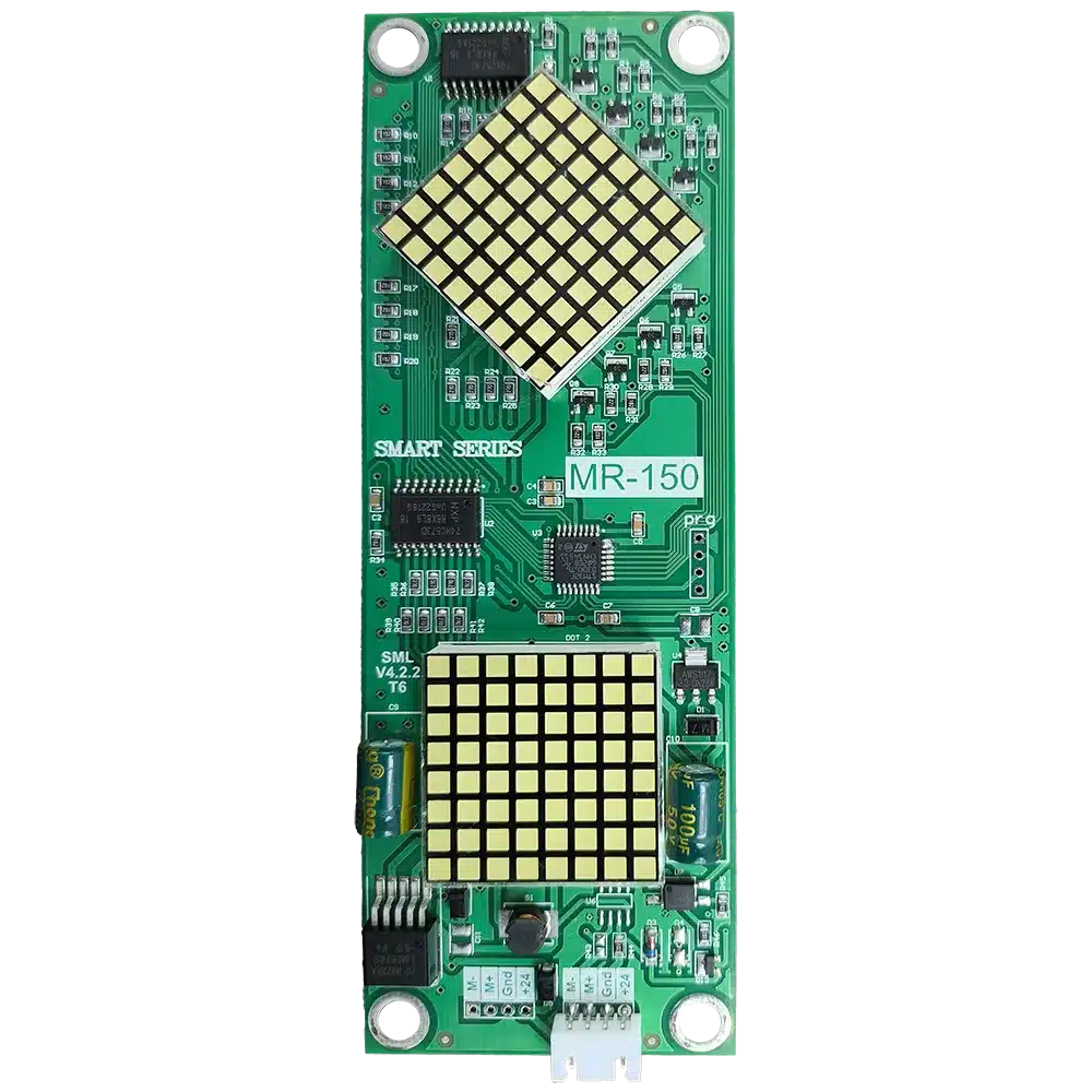 نمایشگر ریزشی MR-150 با استفاده از یک عدد دات ماتریس 8×8 برای نمایش شاخص ها و یک عدد دات ماتریس 8×8 برای نمایش جهت ها ، کلیه پیام های تابلو فرمان را نمایش داده و دارای افکت ریزشی برای نمایش می باشد. این نمایشگر برای شستی های طبقات آسانسور مورد استفاده قرار می گیرد.