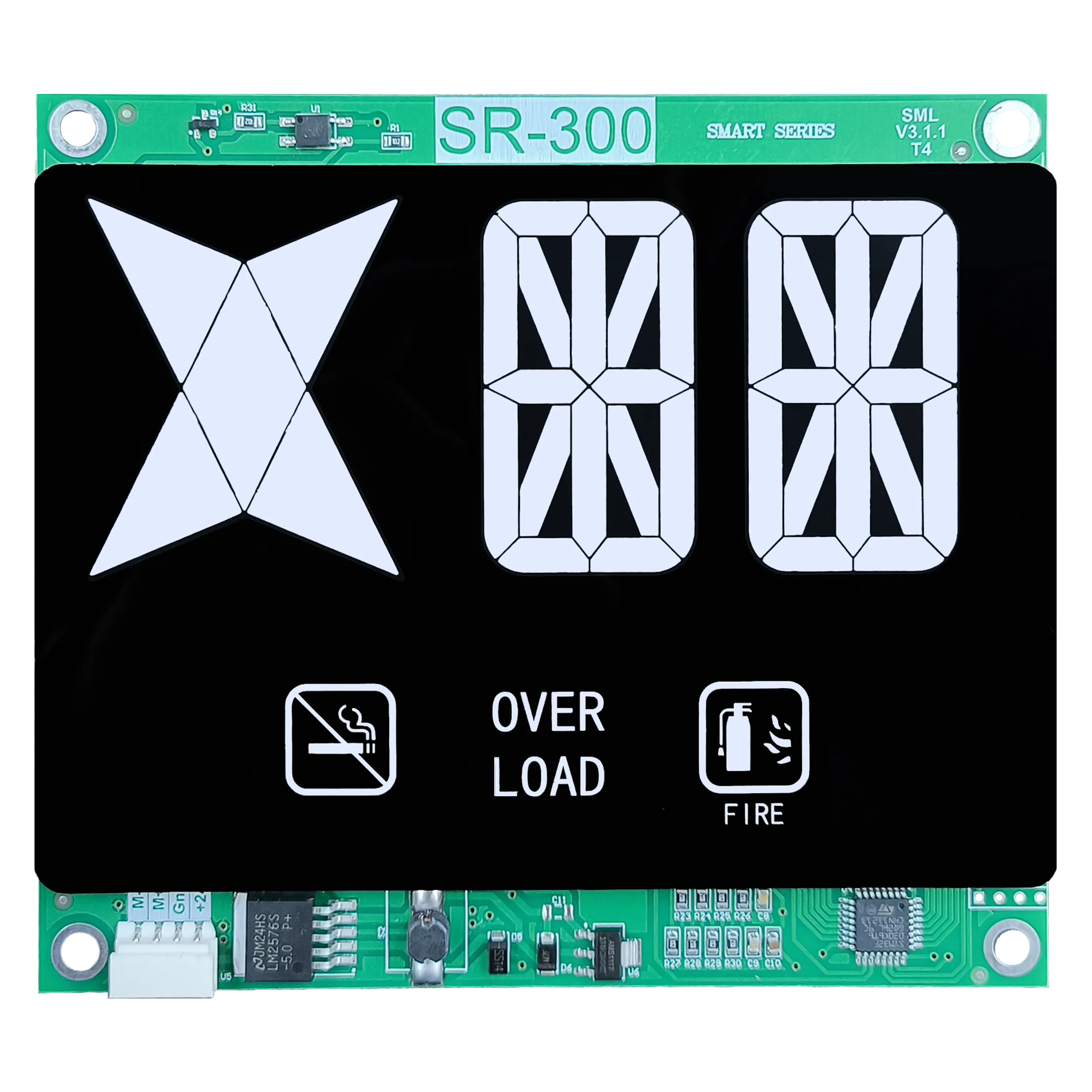 نمایشگر سگمنتی SR-300 جهت نمایش کلیه پیام های تابلو فرمان مورد استفاده قرار می گیرد و دارای افکت چرخشی برای نمایش می باشد. این نمایشگر برای شستی های داخل کابین آسانسور مورد استفاده قرار می گیرد.